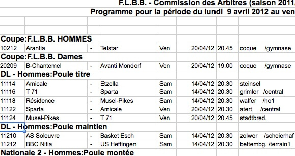 Programme pour la période du lundi 9 avril 2012 au vendredi 20 avril 2012