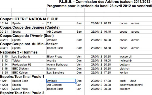 Programme pour la période du lundi 23 avril 2012 au vendredi 4 mai 2012