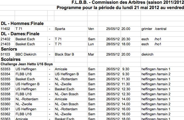 Programme pour la période du lundi 21 mai 2012 au vendredi 01 juin 2012