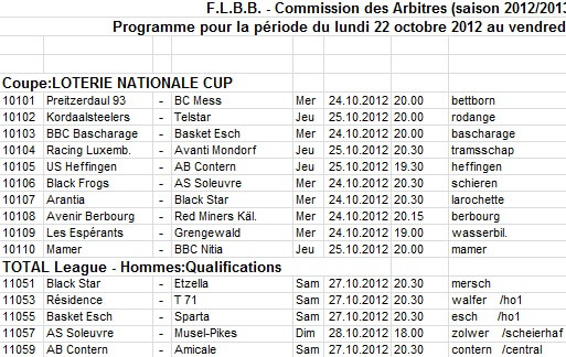 Programme pour la période du lundi 22 octobre 2012 au vendredi 2 novembre 2012