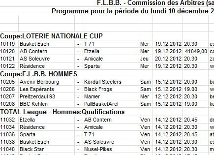 Programme pour la période du lundi 10 décembre 2012 au vendredi 21 décembre 2012