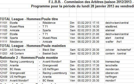 Programme pour la période du lundi 28 janvier 2013 au vendredi 8 février 2013