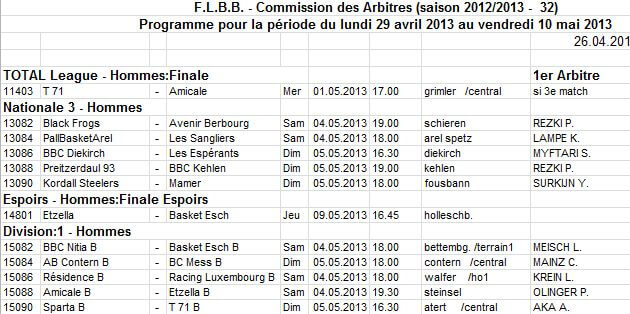 Programme pour la période du lundi 29 avril 2013 au vendredi 10 mai 2013