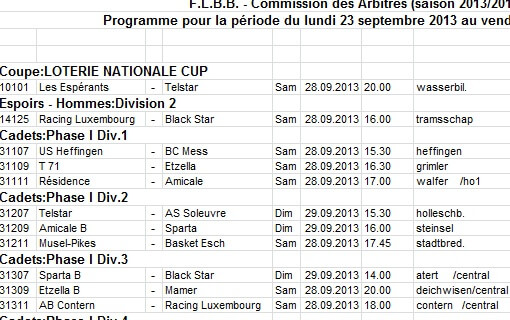 Programme pour la période du lundi 23 septembre 2013 au vendredi 4 octobre 2013