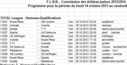 Programme pour la période du lundi 14 octobre 2013 au vendredi 25 octobre 2013