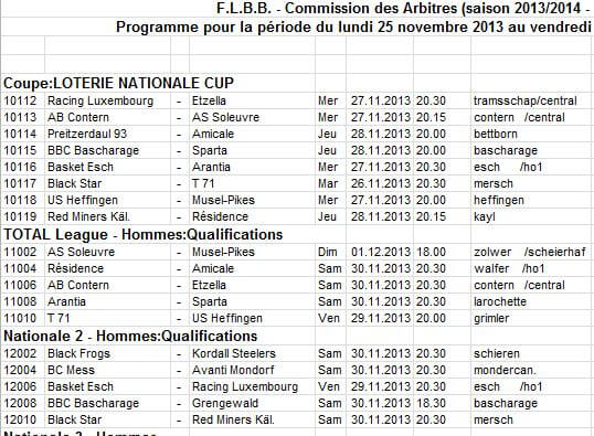 Convocation 13/14 – 11 – 25 nov. au 06 déc. 13