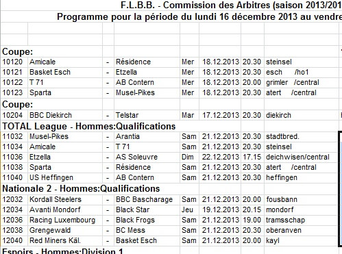 Programme pour la période du lundi 16 décembre 2013 au vendredi 27 décembre 2013