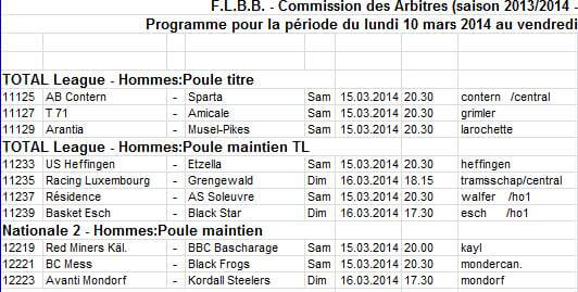 Convocation 13/14 – 25 – 10 mars au 21 mars 14