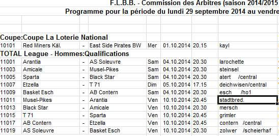 Programme pour la période du lundi 29 septembre 2014 au vendredi 10 octobre 2014