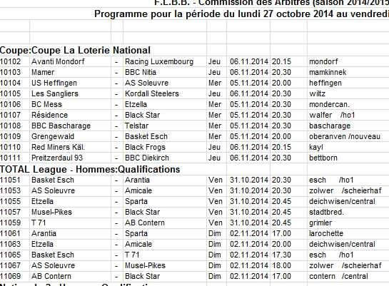 Calendrier matchs