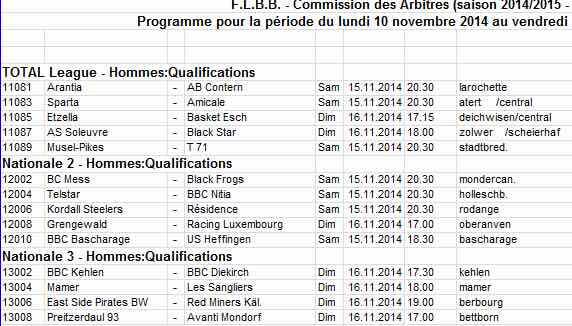 Programme pour la période du lundi 10 novembre 2014 au vendredi 21 novembre 2014