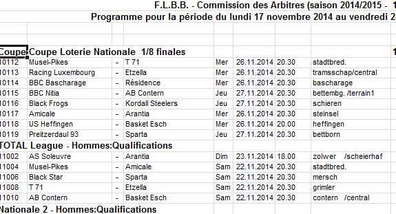 Programme pour la période du lundi 17 novembre 2014 au vendredi 28 novembre 2014