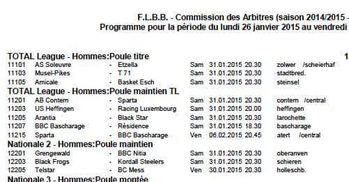 Programme pour la période du lundi 26 janvier 2015 au vendredi 6 février 2015