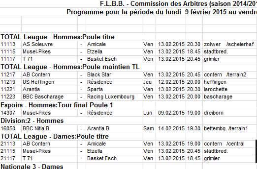 Programme pour la période du lundi 9 février 2015 au vendredi 20 février 2015