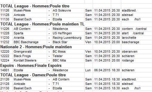 Programme pour la période du lundi 6 avril 2015 au vendredi 17 avril 2015