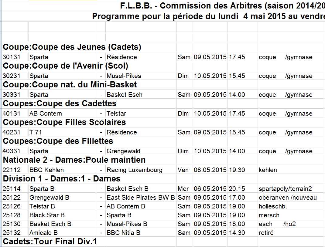 Programme pour la période du lundi 4 mai 2015 au vendredi 15 mai 2015
