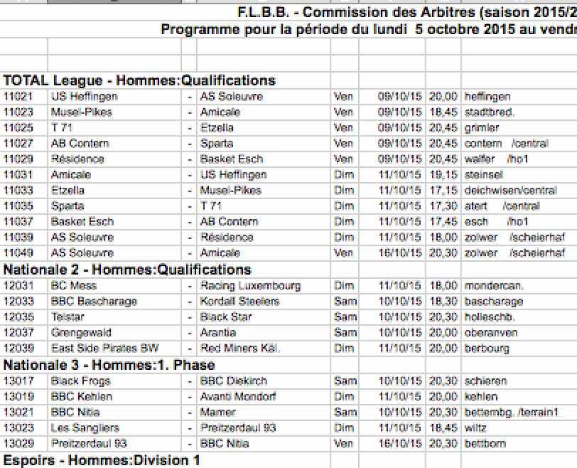 Programme pour la période du lundi 5 octobre 2015 au vendredi 16 octobre 2015