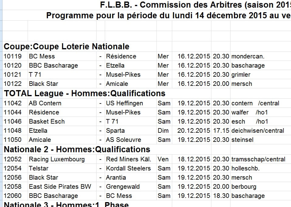 Programme pour la période du lundi 14 décembre 2015 au vendredi 25 décembre 2015