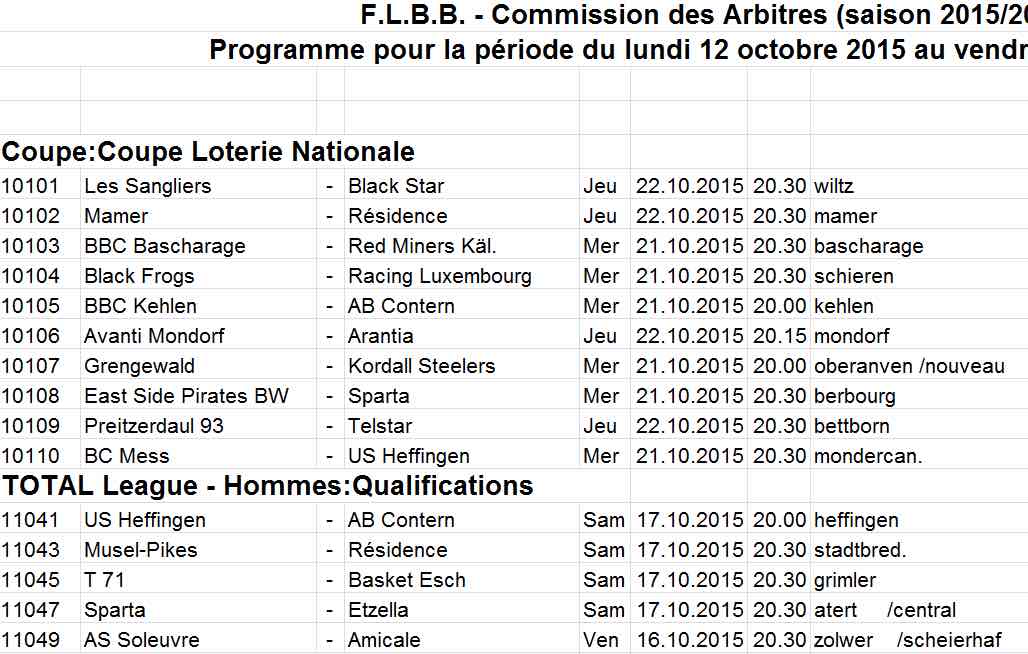 Programme pour la période du lundi 12 octobre 2015 au vendredi 23 octobre 2015