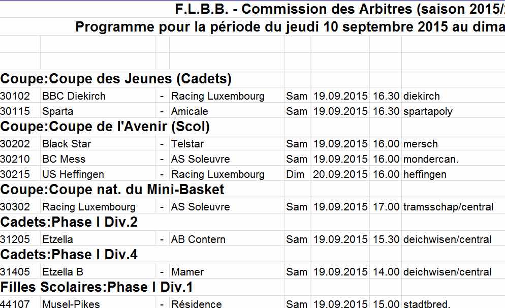 Programme pour la période du jeudi 10 septembre 2015 au dimanche 20 septembre 2015
