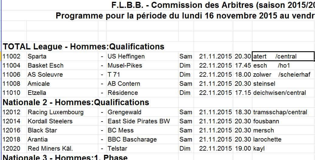 Programme pour la période du lundi 16 novembre 2015 au vendredi 27 novembre 2015
