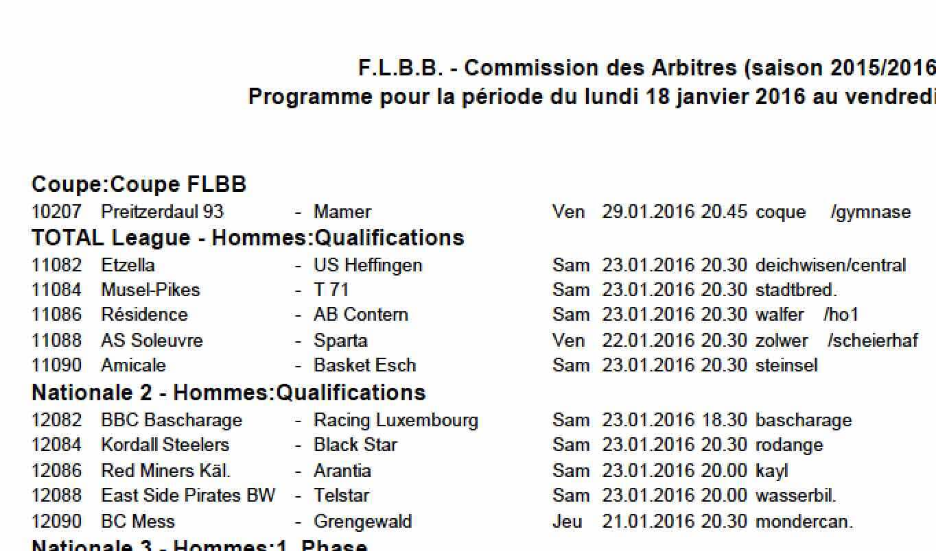 Programme pour la période du lundi 18 janvier 2016 au vendredi 29 janvier 2016
