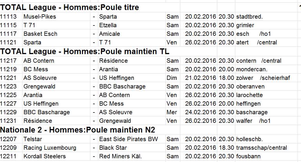 Programme pour la période du lundi 15 février 2016 au vendredi 26 février 2016