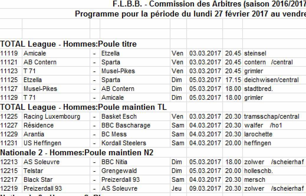 Programme pour la période du lundi 27 février 2017 au vendredi 10 mars 2017