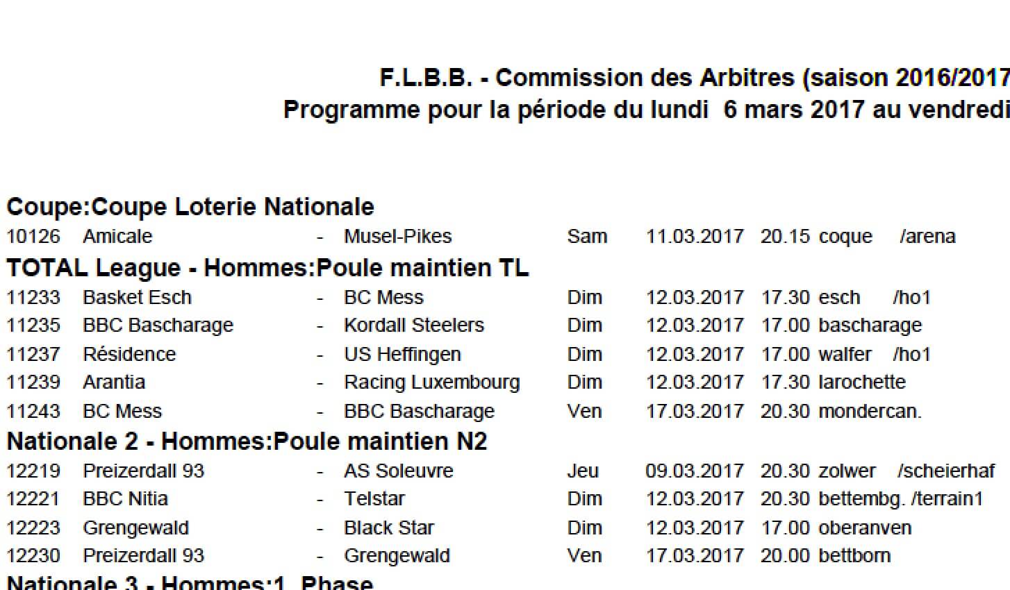 Programme pour la période du lundi 6 mars 2017 au vendredi 17 mars 2017