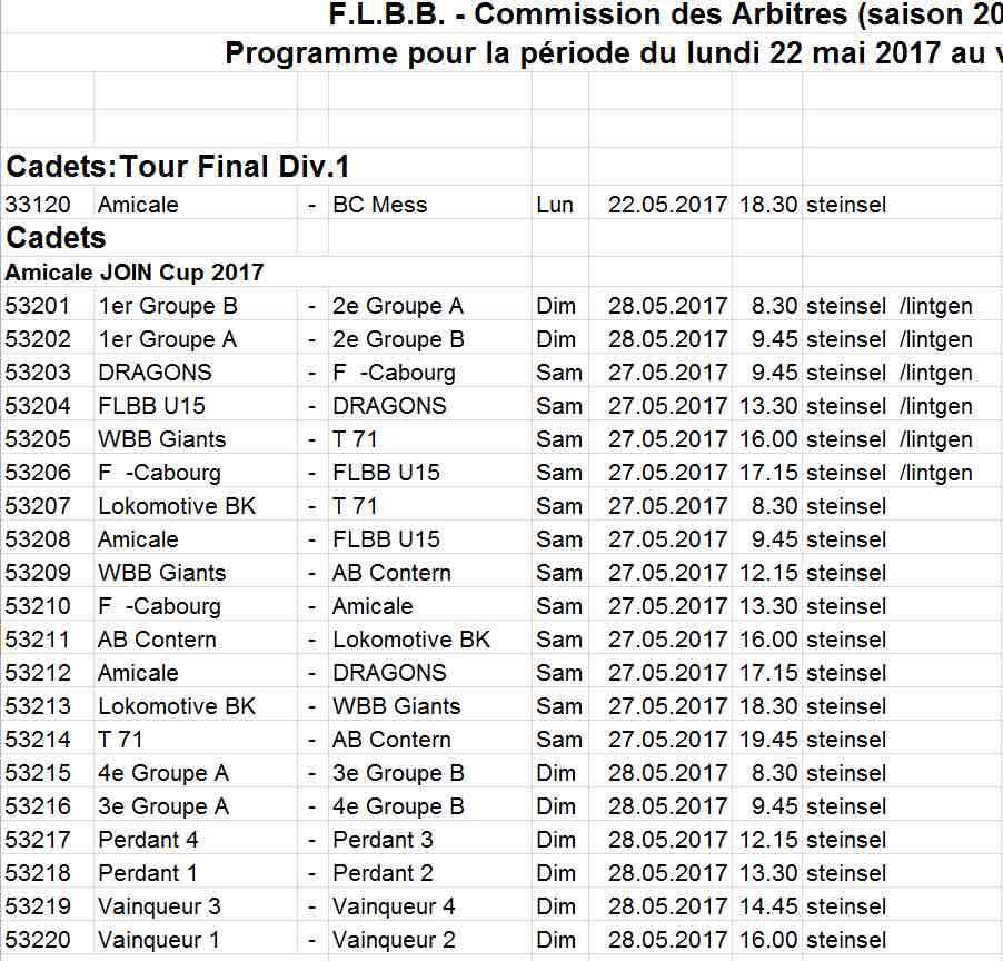 Programme pour la période du lundi 22 mai 2017 au vendredi 2 juin 2017