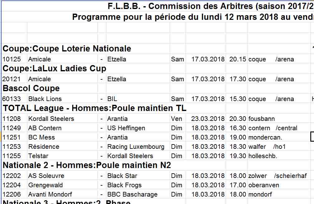 Programme pour la période du lundi 12 mars 2018 au vendredi 23 mars 2018