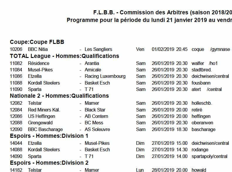 Programme pour la période du lundi 21 janvier 2019 au vendredi 1 février 2019
