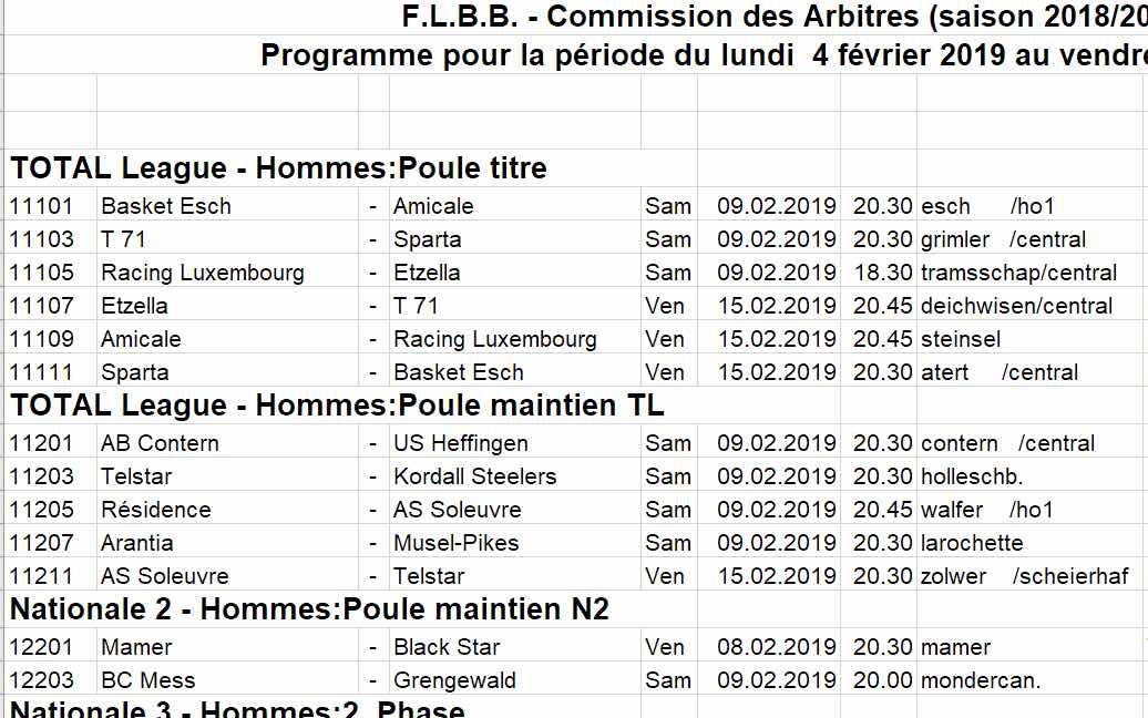 Programme pour la période du lundi 4 février 2019 au vendredi 15 février 2019