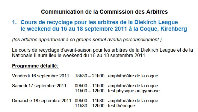 Cours de recyclage d’avant-saison pour tous les arbitres de la FLBB