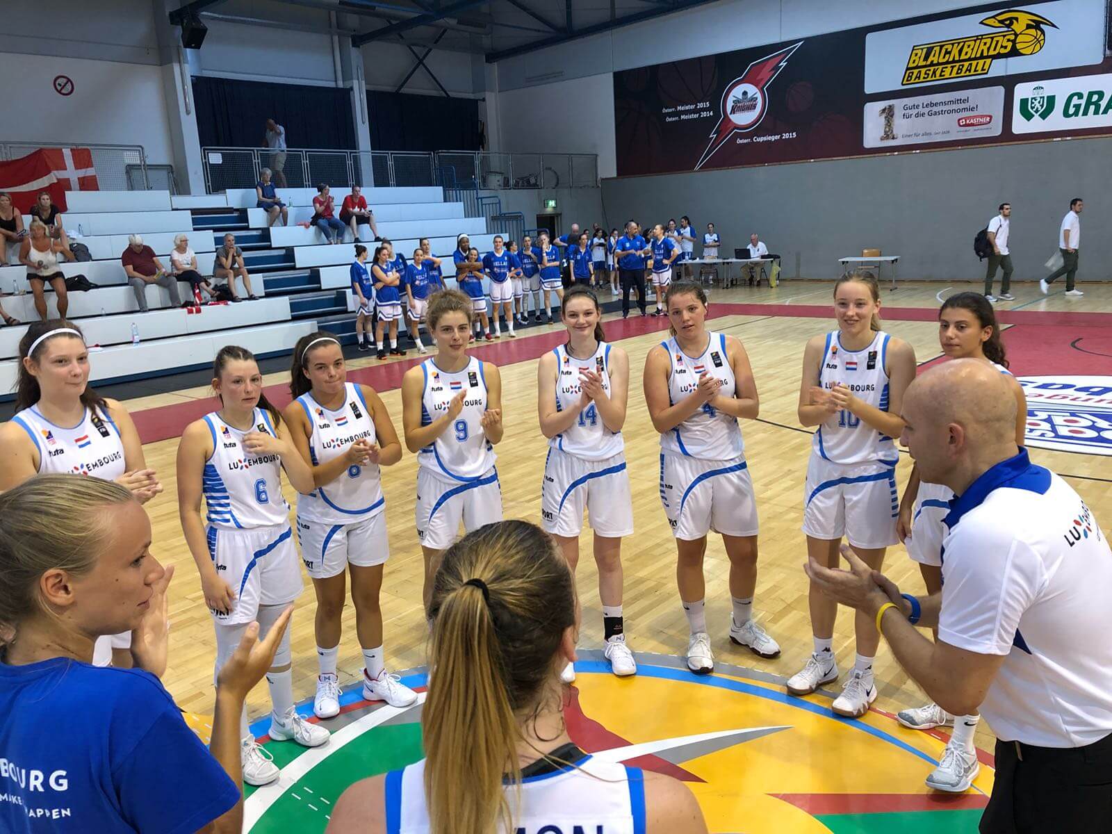 Die Mannschaft spielt nach der Halbzeit weiter sehr konzentriert und lässt sich nicht von ihrer Linie abringen. Mit verschiedenen Verteidigungen (z.B. Box-and-one-Verteidigung) halten die Luxemburgerinnen die Topscorerin der dänischen Mannschaft auf 9 Punkte. Die Däninnen finden auch in der zweiten Halbzeit keine Lösung gegen unsere Intensität und wissen nicht wie ihnen geschieht. Die Mädchen halten diese Intensität bis zum Ende und gewinnen verdient das Spiel mit 80:68.