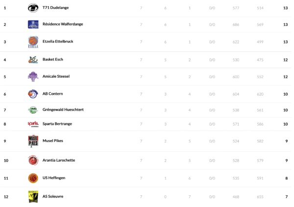 – Basket Esch improves to a 5:2 record, T71 loses for the first time this season (6:1)