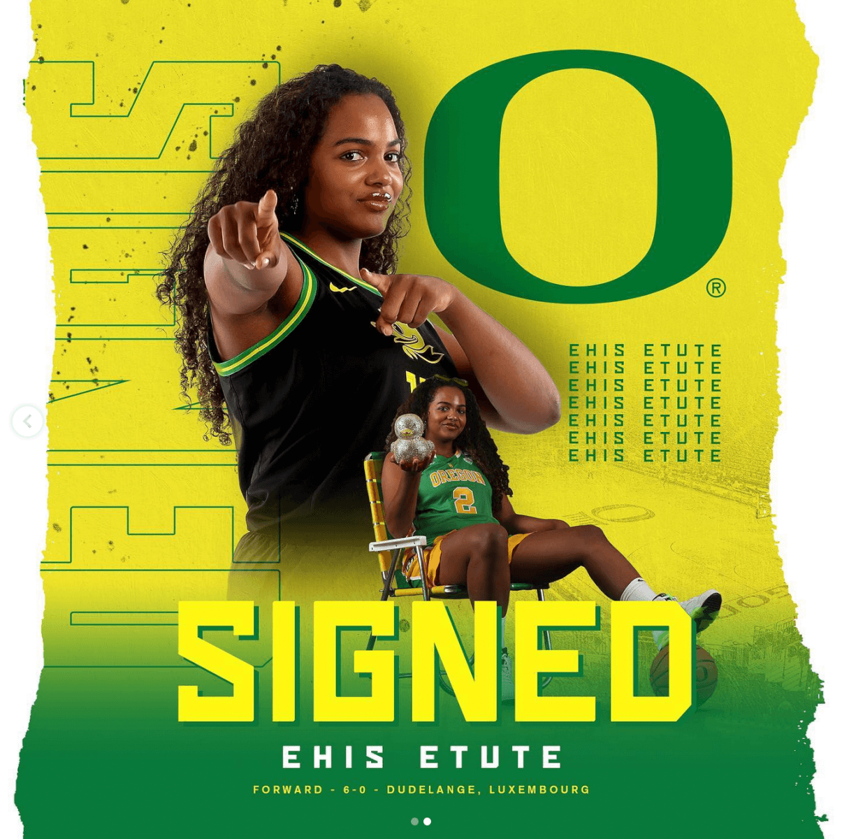 Etute currently plays for T71 Dudelange, she was named MVP of the U18 European Championship (Division B) this summer. Oregon plays in the Pac-12 conference, a high level division in the United States.