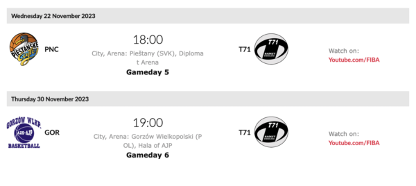 Dudelange has 2 road games remaining in the competition while Gréngewald will play the last 2 games at home. On Wednesday, T71 plays on the road in Slovakia to face Pietanske (18:00) while Gréngewald hosts Antalya on Thursday (19:15).