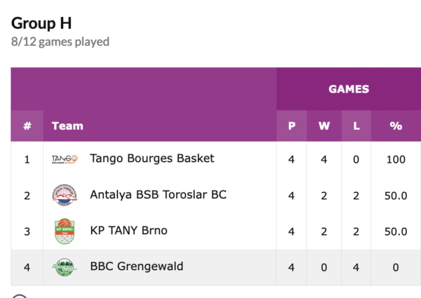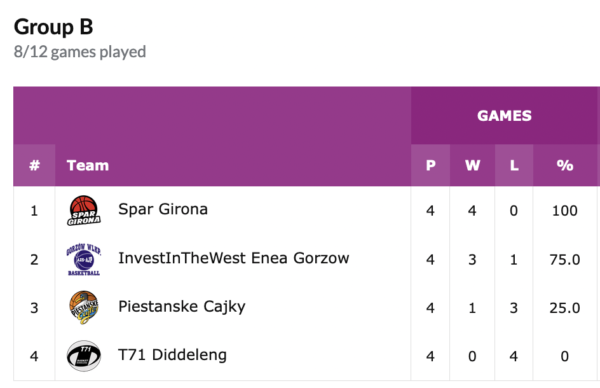 Both teams from Luxembourg are looking for their first victory in this year’s competition. While Dudelange lost the first matchup against Wednesday’s opponent by 18 points, Gréngewald lost by only 1 point on the road in Turkey a few weeks ago so that the team certainly has high hopes to compete for a win on Thursday.