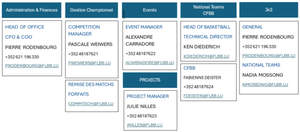 Tél.: +352 481876-1 (Centrale) Fax: +352 482114 E-Mail: flbb@flbb.lu