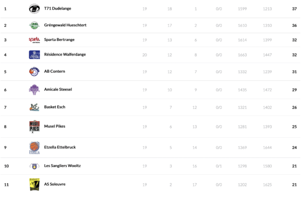 –> T71 needs to beat Amicale by more than 9 points and they need a loss by Basket Esch against Heffingen to take the first place
