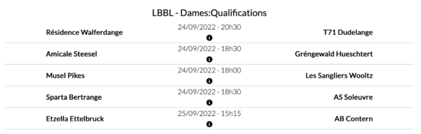 In the women’s league, the Musel Pikes tip off the season at 18:00 against Wiltz. Without Cathy Schmit, Laure Diederich and Bridget Yoerger, the team of coach Louis Wennig will look a bit different in the future. A lot of changes happened in Wiltz this off-season so that it will be interesting to see if the team can compete on the road.