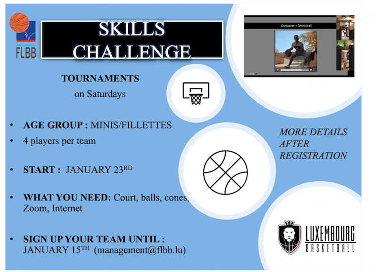 The FLBB is organizing a skills challenge for the age categories « Minis » and « Fillettes », especially because there are no competitions possible for kids at the moment.