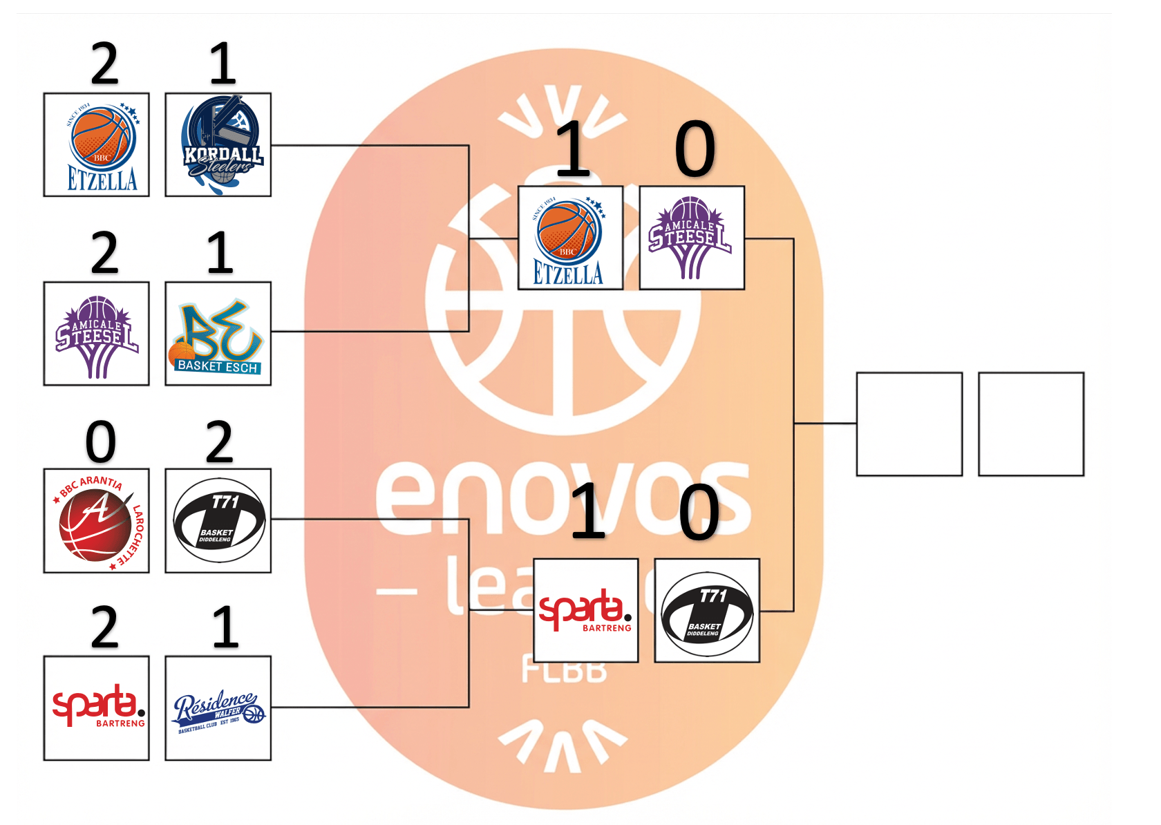 Amicale Steinsel needs to find a way to slow down the strong offense of Etzella Ettelbruck, the team from the North scored 89 points in the first matchup. The question for Sparta will be if pro player Iwuakor will be able to return after his injury in the first half in game 1. Dudelange will try to shift the series back to Bertrange for a final showdown.