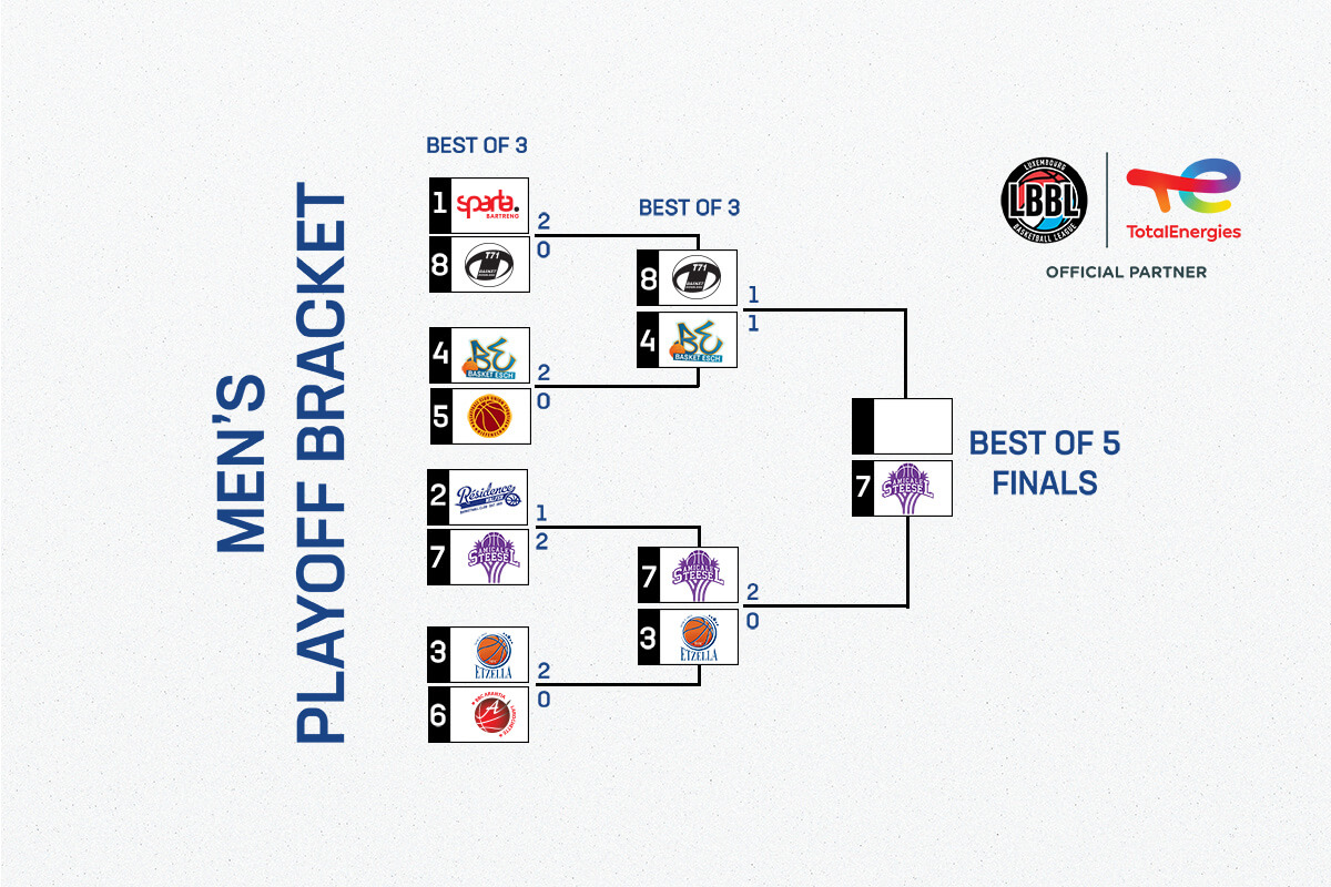 Basket Esch earns home court as the number 4 seed of the regular season. T71 entered the play-offs as the number 8 seed and now is one win away from entering the finals and a chance to defend its title.