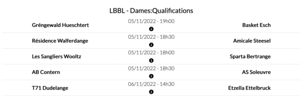 In the women’s LBBL, Gréngewald Hueschtert (4:1) hosts Basket Esch (2:4), it is the second game for the « Greens » this week after their EuroCup game on Wednesday ( –> Gréngewald loses 52:76 against Braine ). The derby between Résidence Walfer (5:3) and Amicale Steinsel (4:3) should become a thrilling game to watch.