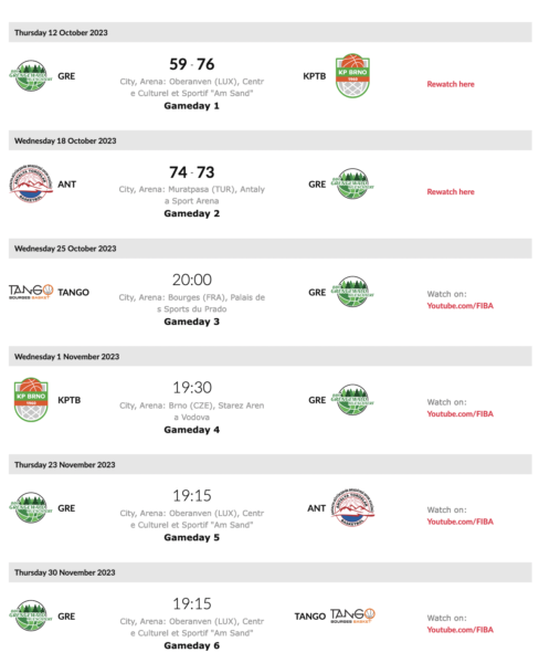 Antalya – Gréngewald 73:74 ( –> Gréngewald loses dramatic game in Antalya by one point (video) )