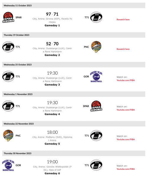 The full schedule of T71 Dudelange: