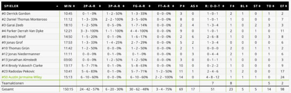 Thomas Grün and his team Gladiators Trier have started the play-offs with a victory at home. Trier now leads the best-of-5 series against Leverkusen 1:0. On Friday, Trier won 92:68, Grün scored 2 points in 12 minutes on the court.