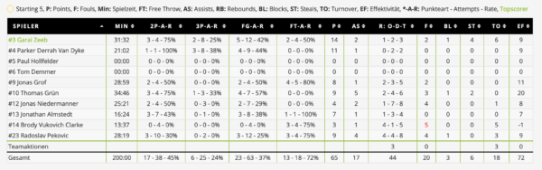 Thomas Grün and the Gladiators Trier lost on the road in Kirchheim on Saturday-evening, the final score was 65:71.